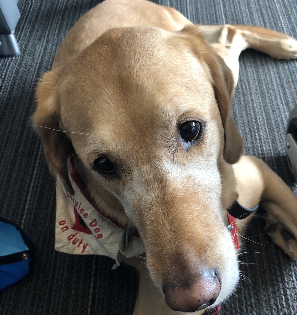 Max was adopted from Lucky Lab 6 years ago and was trained to be an amazing service dog to his mama. Together, they have traveled across the country and to France, Spain, and Scotland!