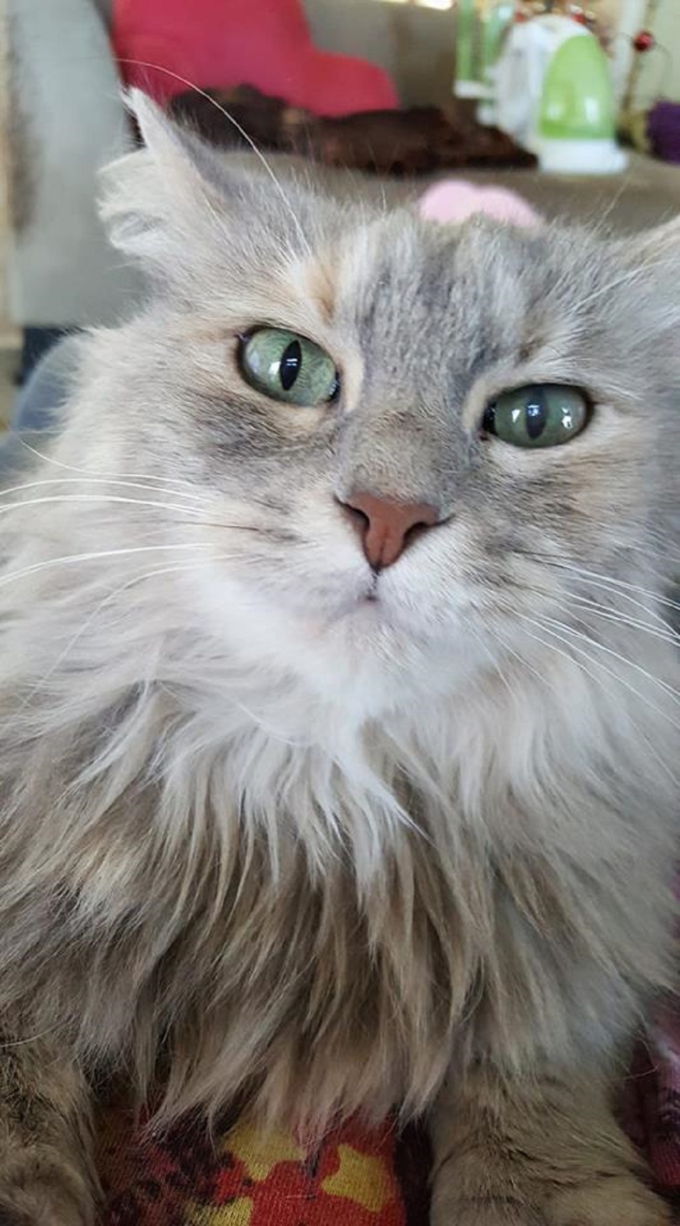 Rescued from a shelter, 4-year-old Emily came in with significant eye infections. Once treated, we discovered she has Dry Eye. Which means eye drops twice a day for the rest of her life...which she does NOT mind as she knows treats are given at the end. In fact, she jumps in my lap and grooms my face when it's time. Little paw reaching up to bring me back down so she can lick my nose. Love this little girl!!