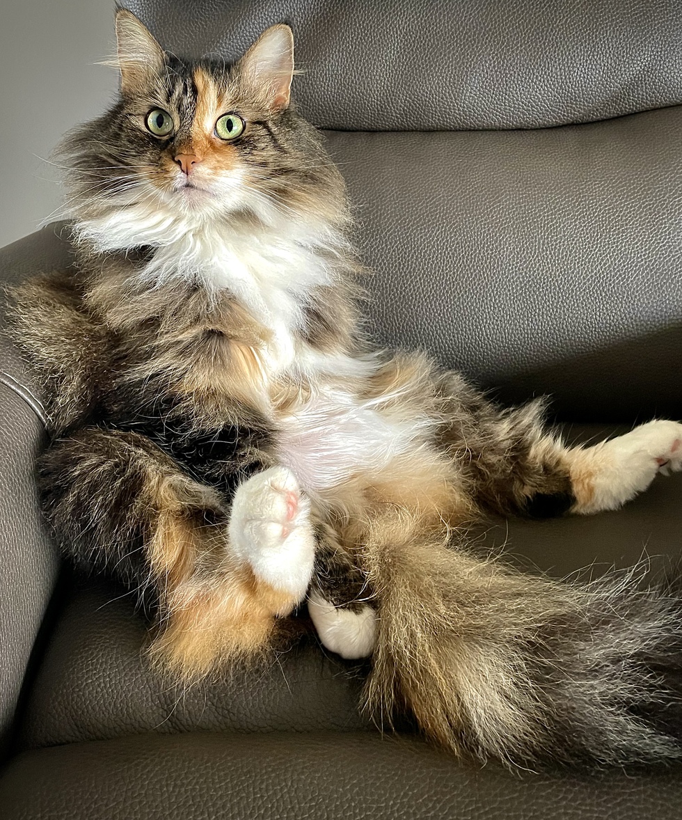 Maravilla (which means “marvel”) found us after our previous Maine Coon Rescue of almost 20 years passed away. She has filled our home with conversation, our days with laughter, and our hearts with love.
