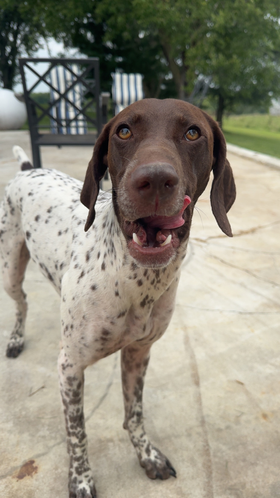 Molly came to us from a small farm in Missouri. She was all legs, spots, and boundless energy. She was the runt of her litter, but what she lacked in size she made up for in spirit. The moment she bounded into our arms, tail wagging and eyes full of curiosity, we knew she was home. Now she lives on a 25 acre farm where she runs, points, and plays to her heart’s content.