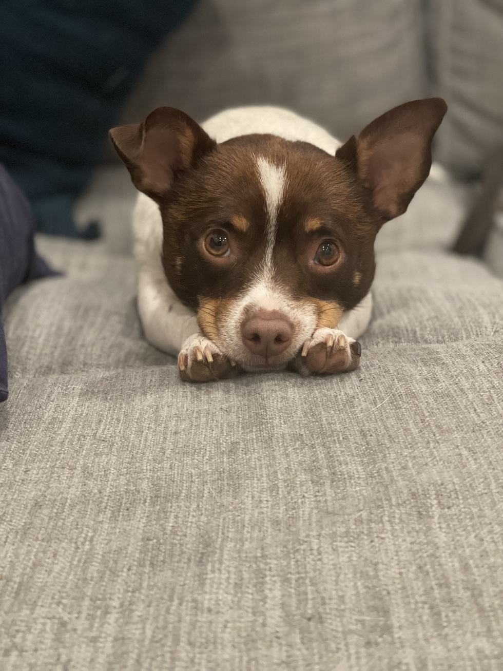 We adopted Marty from M.A.M.A.S. in April 2021 after having to put down our first dog the month prior. A week of working from home truly alone without a dog was all it took for me to start looking for a new best friend. Someone else had an application in to adopt Marty, but the stars aligned and he made the journey here to us in DC. He has since welcomed a big brother, Pablo, rescued from Kentucky and has transformed into the sweetest little cuddle bug. His DNA results show he's 53% Chihuahua (with the skittishness and howl to show it), 25% Pit Bull (a surprise for his 15 lb. frame), and the remaining more or less equal parts Yorkie, Toy Fox Terrier, and Staffordshire Terrier. Marty loves Greenies and hates the rain. We are looking forward to many happy years together!