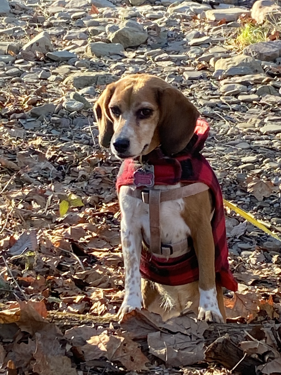 She enjoys riding in her buggy behind our bikes, but her most favorite thing is following her nose down the hiking trails. And she is always the last to quit!