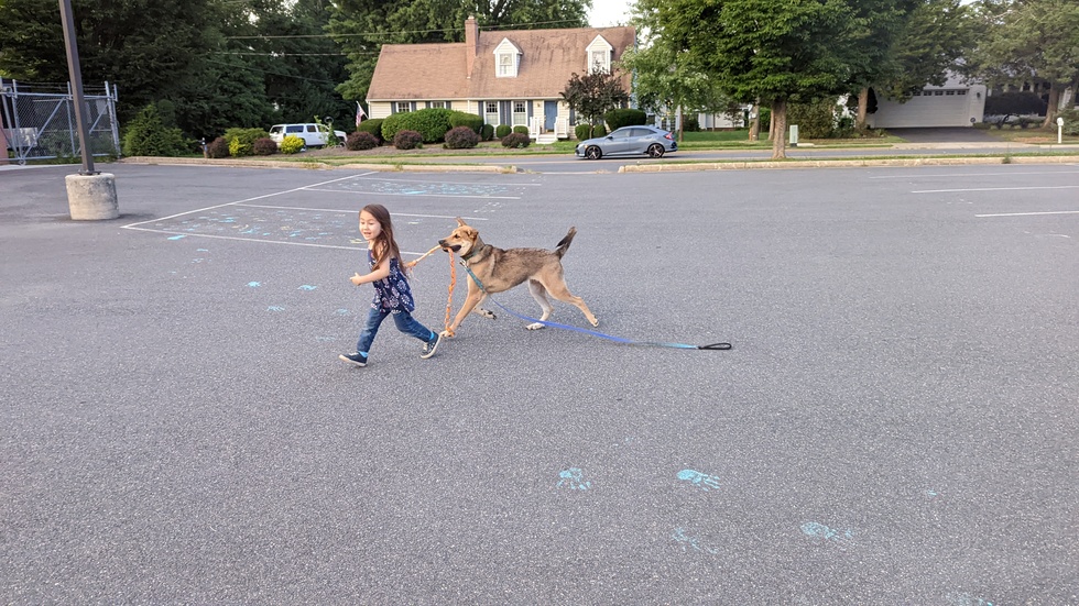 Baker was born at the M.A.M.A.S shelter. We worked with the wonderful staff to find a puppy with the right temperament to train as a service dog. Baker's got it all, even if he likes to chew throw pillows... He graduated from Puppy Level 1 and is almost done with Puppy Level 2. He's a very silly puppy who loves to play with his girls and his canine big brother. He'd love to play with the cat too, but she still thinks he's scum. Baker is a big, loveable, baby and has been a wonderful addition to our family.