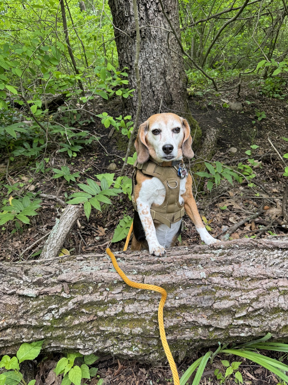 Our sweet little Alice had a rough start, running loose in the wilds of South Carolina with a pellet in her hip! But, in spite of this, she is the sweetest little girl you would ever meet. She has passed numerous training courses with flying colors, earning the AKC Canine Good Citizen Award! Coupled with this, she has become certified as a trained Therapy Dog. Her favorite venue for Therapy Work is the Harrisburg International AirPort. She has a knack for singling out folks who are really hurting and helps ease their pain, if just for a few minutes. She loves bike rides (in her own buggy), truck rides and walks. While she likes walking anywhere, her favorite place is in the mountains! Everywhere she goes, she brings smiles to people’s faces and she makes new friends on almost every outing!