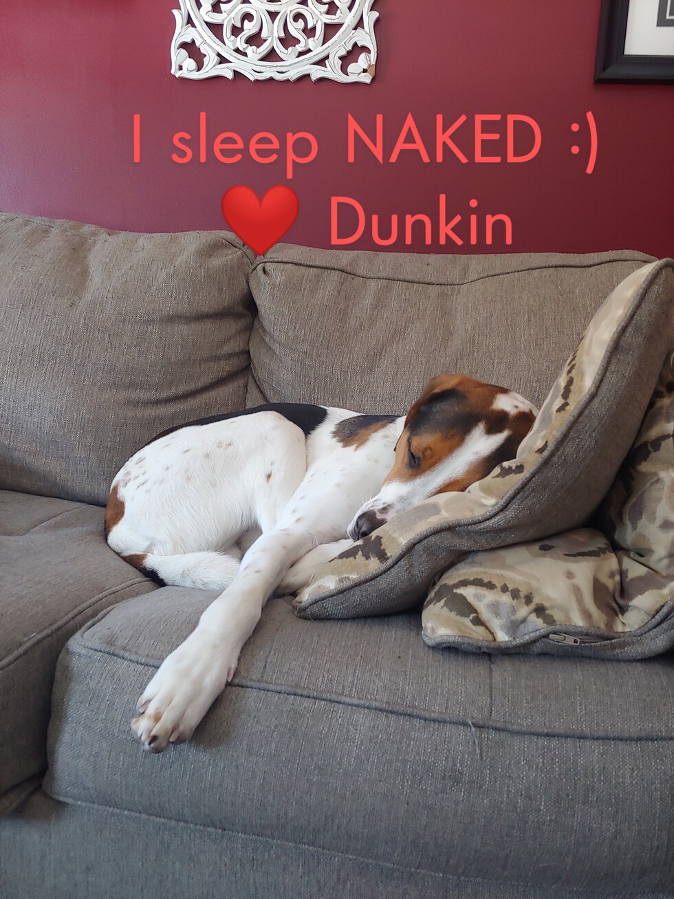 Dunkin is the sweetest boy ever!! A Marys dog rescue who made our family whole!! He loves to sleep in the buff... Everywhere... Just fur to surface all doggonne day!