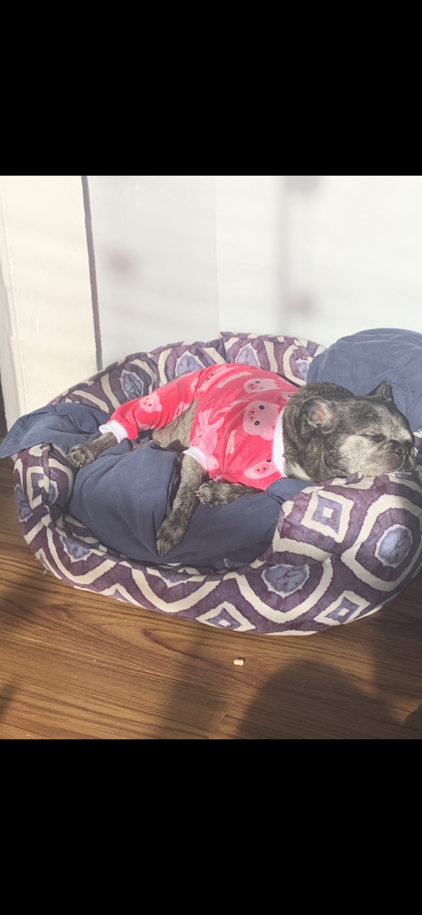 Carl is a rescue from Animal Care & Control in New York City, now living his best life in pig pjs in New Hampshire. ❤️