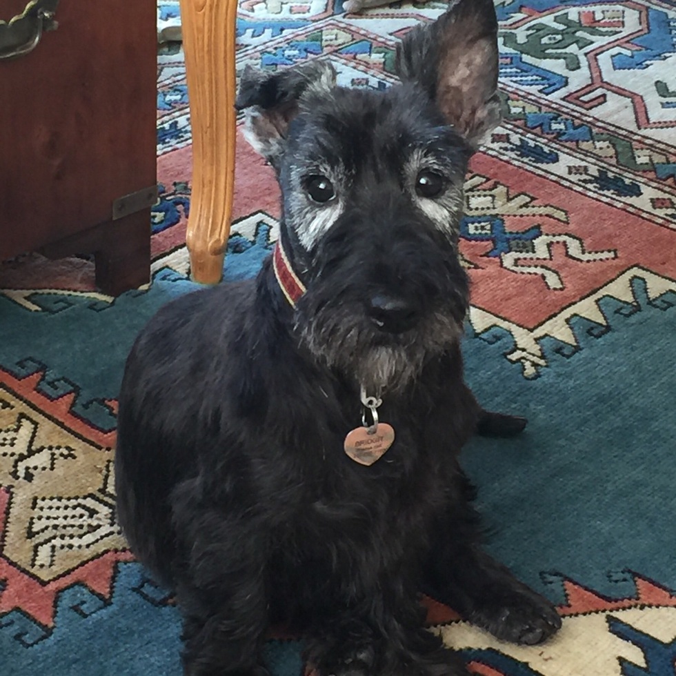 An out of town vet contacted MASTER when Bridget was presented to be euthanized by a puppy mill owner because she had a lateral ear infection and could no longer be bred.  The vet put out a call to MASTER who retrieved her from the vet and, in turn, contacted me.  I was grieving the loss of my sweet Samantha, another MASTER Scottie, and my prayers were answered when I adopted Bridget....the sweetest little girl since my Samantha.  She's settling in nicely and becoming playful and mischievous.  We're just on our  5th week together and it gets better every day.