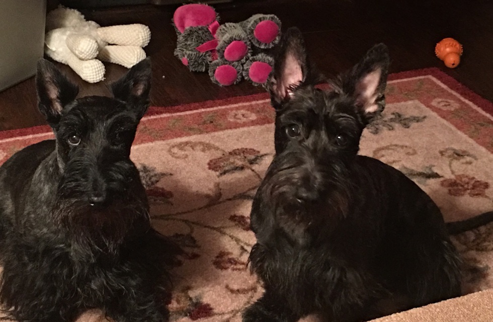 Two days after C.J. crossed the rainbow bridge, his great niece, Gioia ( Frank & Jeanne's Joy), came to live with me. And she has been a blessing and a JOY. Seven months later 3.5 pound 10 week old puppy mill rescue, Collin, joined us. Gioia welcomed him as one of her pups and began showing him the ropes. Collin soon learned what he could and could not do! They love playing tag and tug-of-war with each other. And they allow me to share MY bed with them.  Fortunately they love boarding with Frank & Jeanne. Thanks to MASTERS and Frank & Jeanne for precious additions to my life.