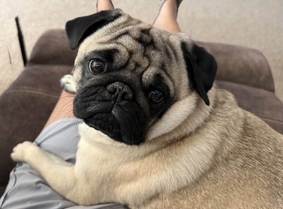 Oh our little Oakley! He is the sweetest most lovable pug ever.! Oakley loves to snuggle any time, day or night. He loves playing fetch and chewing on his squeaky toy. Life is good!!!