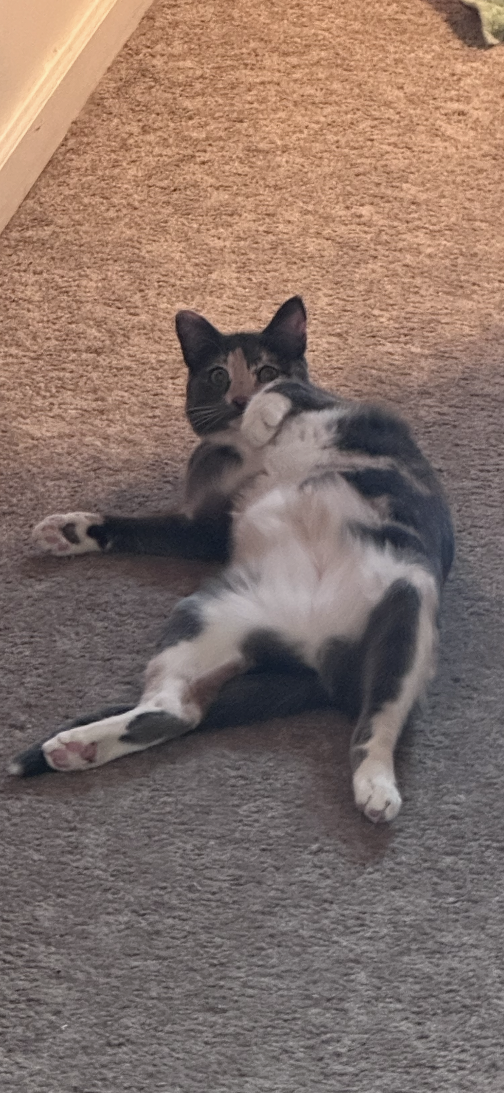Barbara Bean was adopted from Maclean and is the sweetest, funniest cat in the world. She loves playing with hair ties and water and snuggling her family.