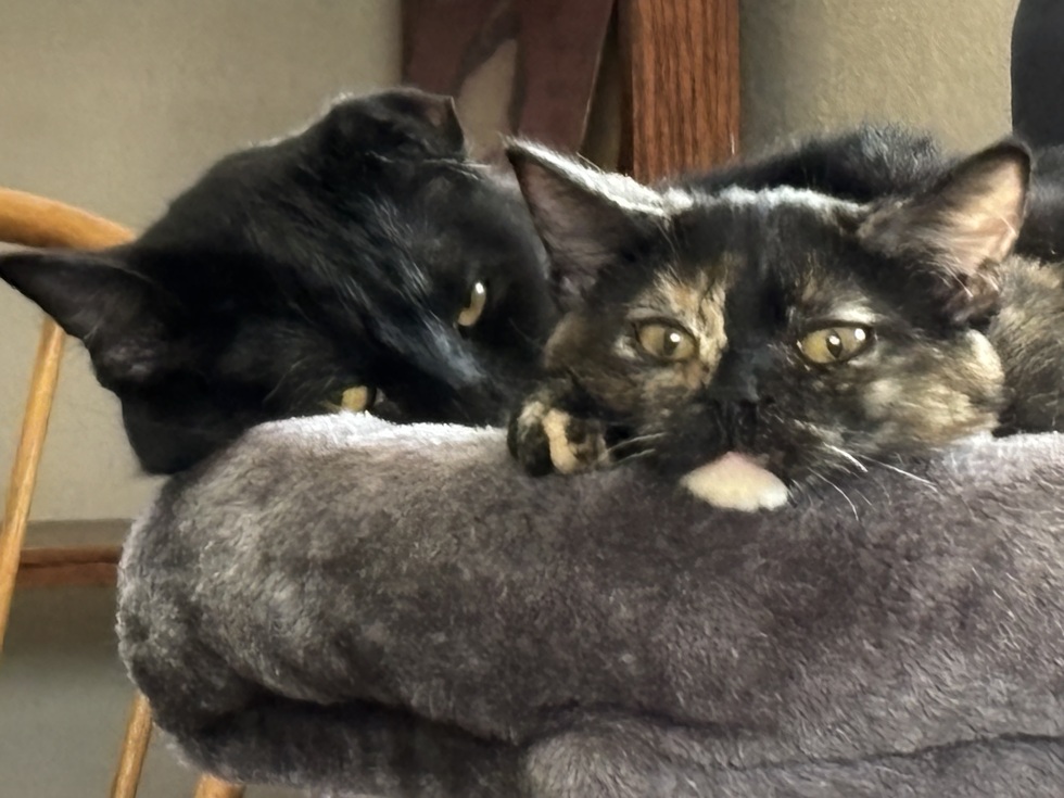 Tell us how your pet has enhanced your life. (Optional; 50 words max.)The two sweet kitties are rescues from the NW Montana Humane Society and were from a reservation . We love these kitties dearly ; Mama is definitely a survivor and is the boss . Baby thinks she is a dog and hangs out with our two dogs all day.