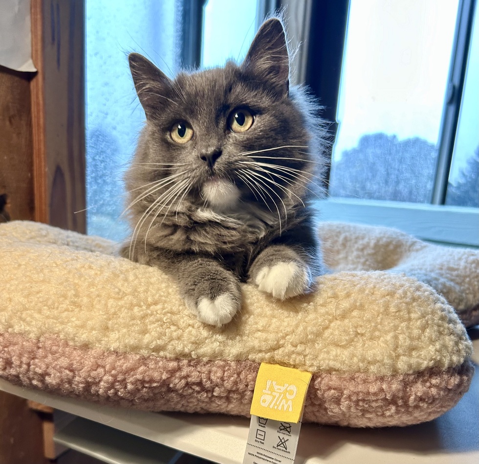 Jack was a timid stray kitten found living near the church in the village in Mendocino, and was rescued by the Coast Cat Project. Originally a foster to help with his shyness before heading to the Mendocino Coast Humane Society, he quickly stole our hearts and found his confidence living in our home, so we decided we had to make him a forever part of our family. "Baby Jack" is now a giant-sized cuddly and crazy ball of floof, but he'll always be a baby to us.