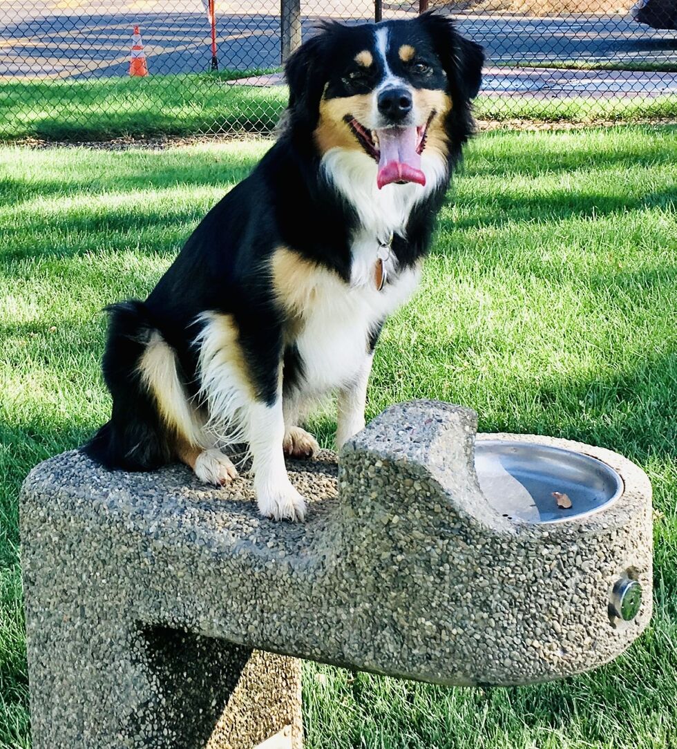 Elfie, aka Rustling Grass, Elf on a Shelf, is a 9-year-old miniature Australian Shepherd.  Elfie loves to play fetch every morning and makes the most amazing, acrobatic jumps! The best part is she brings the frisbee back to her daddy to do it all over again!  When she takes a break, she jumps on the water fountain to get a drink!  Happy, happy doggie!