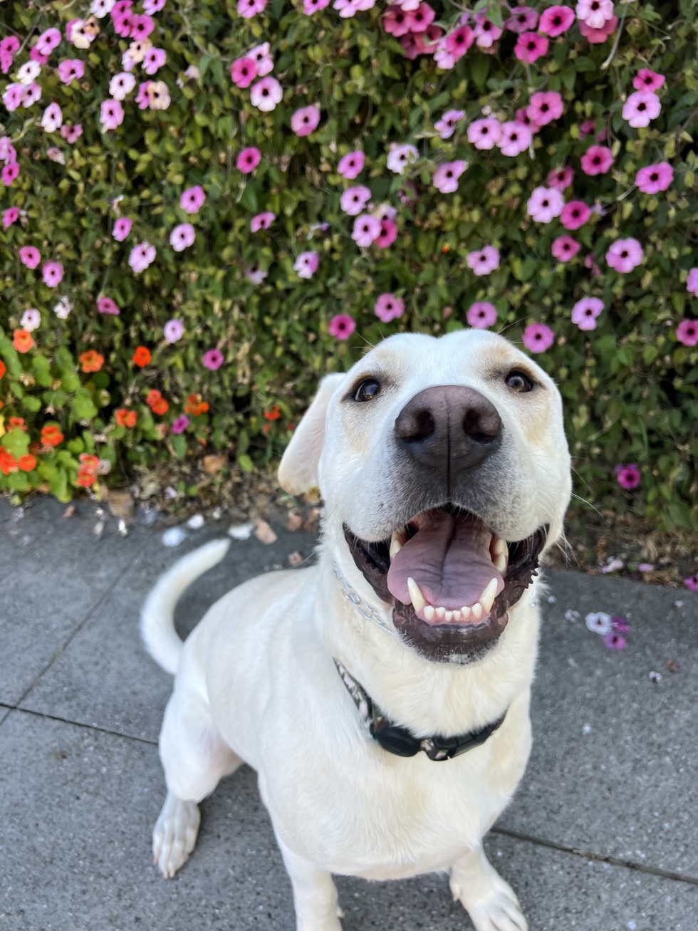 Goliath is a playful, squirrel loving, gentle giant! He was rescued from the Mendocino Coast Humane Society in March after being a resident there for almost a year! His life before the shelter is unknown, as he was found on the side of the road with his brother. He lives his best life everyday by looking for squirrels, going on walks/runs, playing with his best friends (one is a pug!), and laying in the silliest positions. He is an absolute sweetheart!