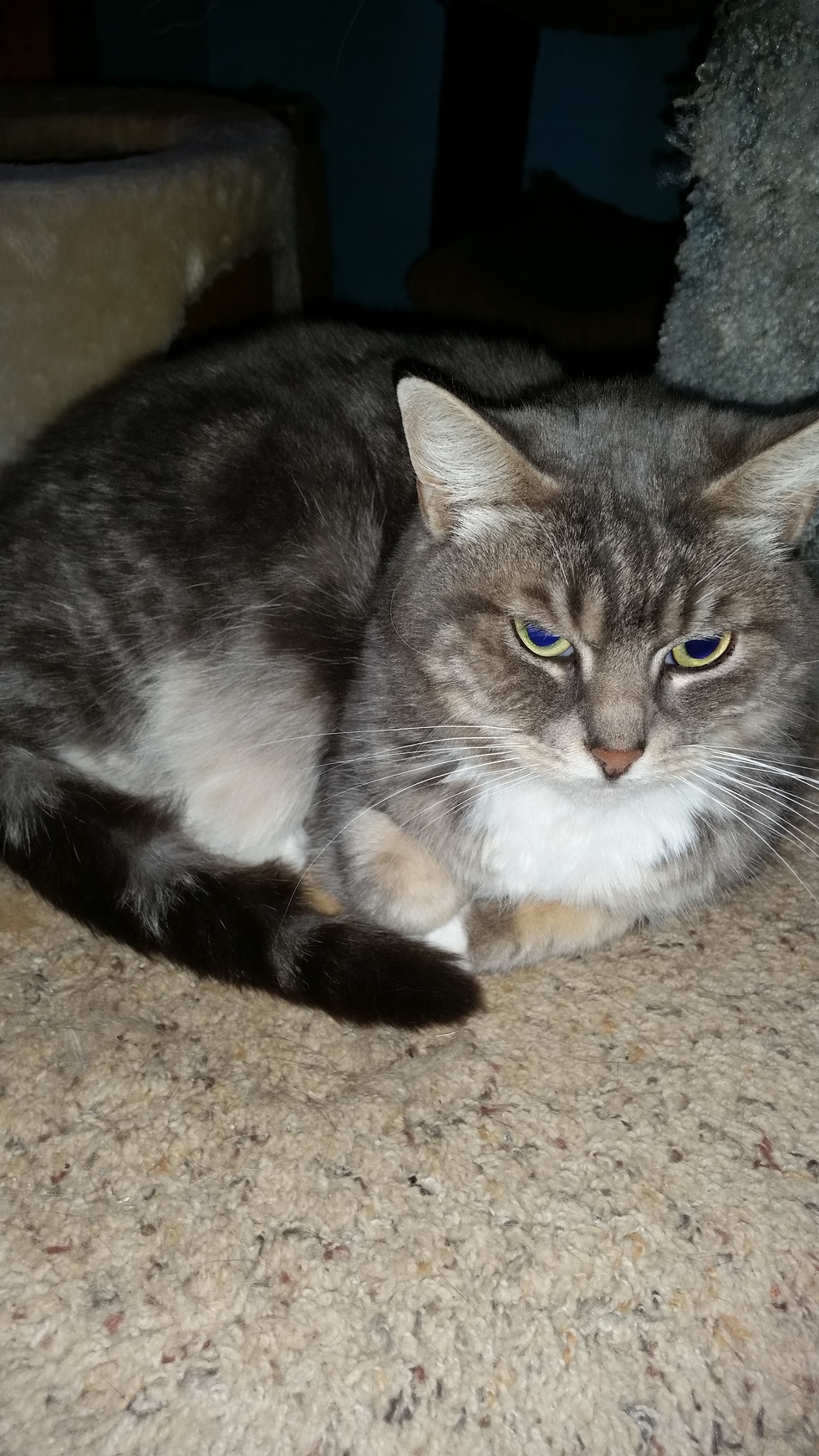 Sweet felv positive feral that has learned to trust. Such a joy.