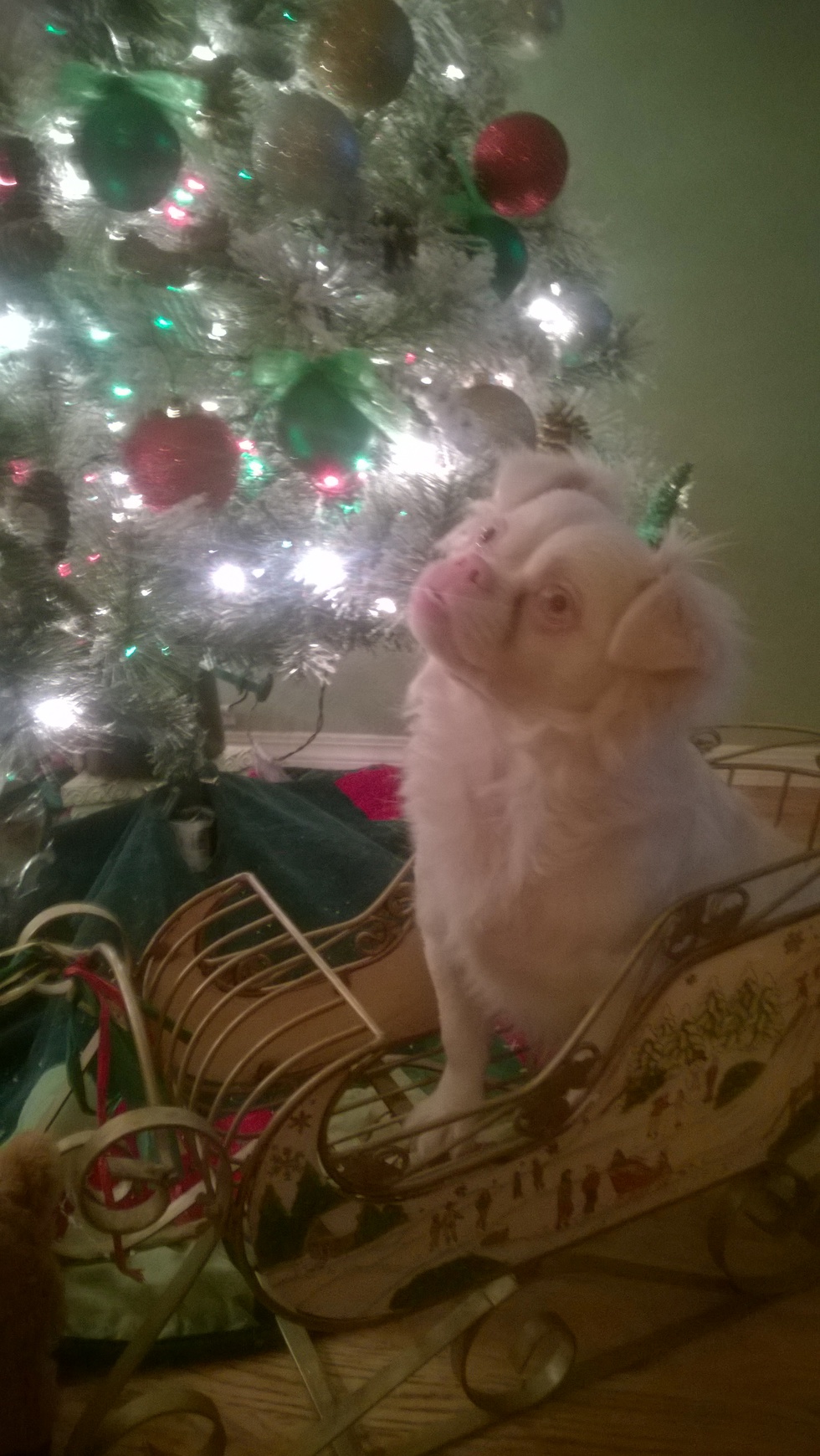 Because he loves me with all his little Albino Pekinese heart. He has a baby like personality when he just wakes up or is tired at night. He loves to go to bed. He let's me know when it's time by pawing at my arm and kissing me. Love Casper.
