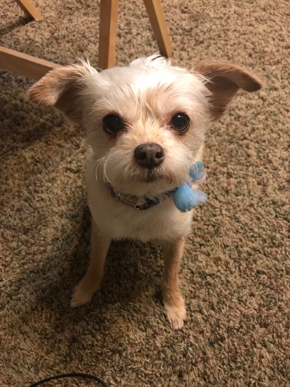 My wife and I were fostering Izzy for her quarantine hold and her spay. She got the sniffles and ended up staying with us for almost two months. But, I fell in love with her and could not give her up. My wife and I then adopted her from the Meridian Canine Rescue. She is one of the sweetest dogs we have ever had. She is my shadow and a great cuddle buddy.