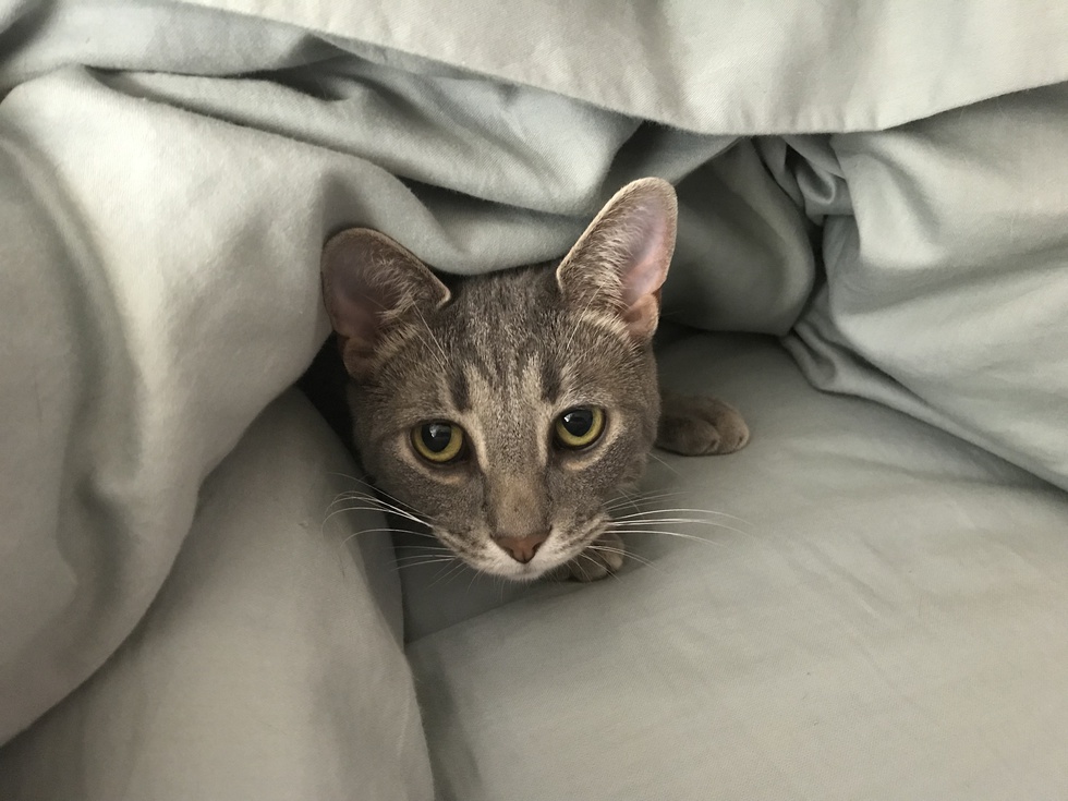 Quigley is a very handsome boy. He is a rescue kitty, full of vim and vigor. He loves darting around chasing ANYTHING and particularly likes to steal his sister’s food.