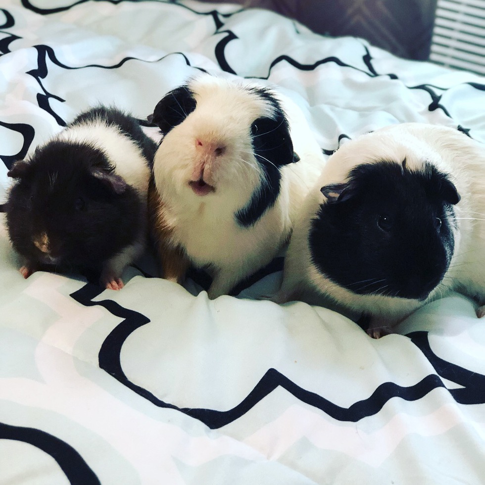 Our guineas Love playing, jumping, and snuggles. Our newest addition is Gus Gus and he’s fitting right in with his brothers.
