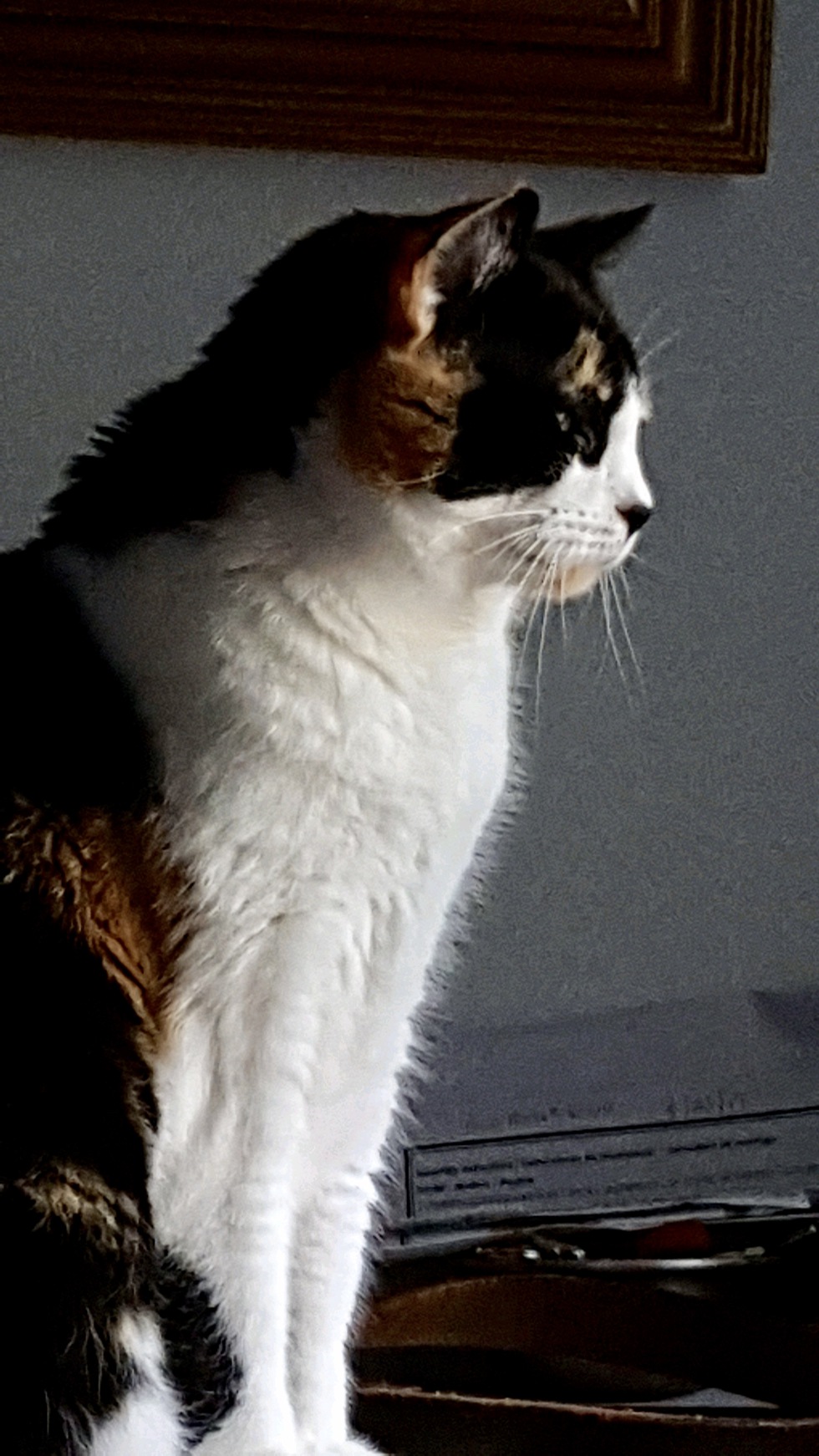 Callie came to live with we 12 years ago. She was a barn cat that needed a home. Callie is a smart loving girl!