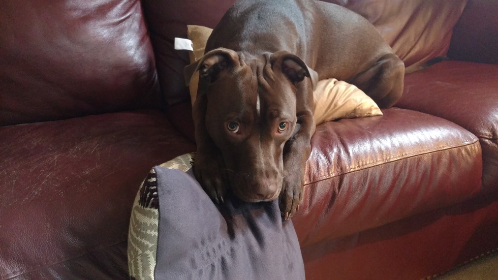 Ireland is a 2 year old Pit Mix that we rescued. She loves to play, go on adventures, and is extremely affectionate!