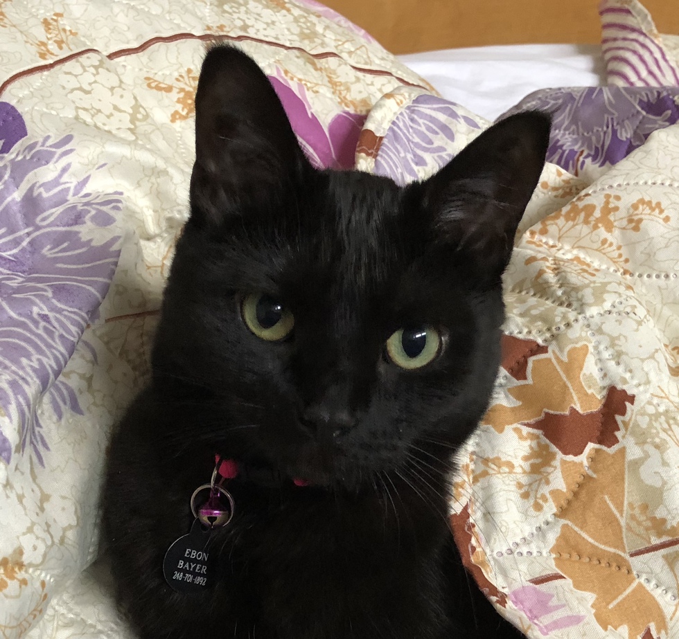 Ebon was a rescued kitten, that we received at 8 weeks old. She loves to cuddle and has a sixth sense, in addition to being absolutely adorable.