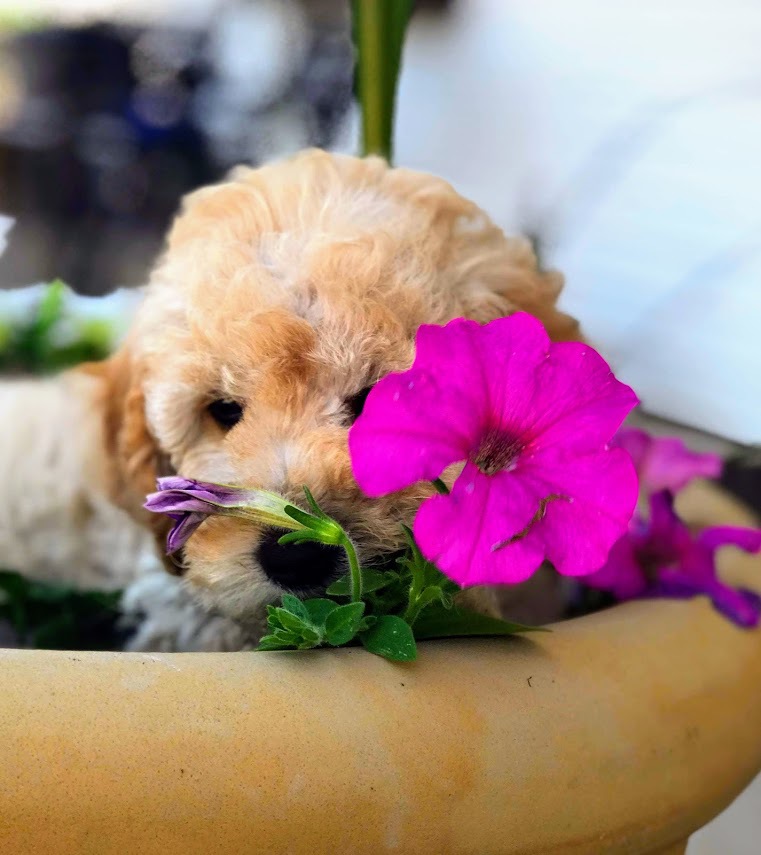 Beatrice is a 3 month old toy golden doodle. She has only been in our home for a week and has already transformed it...in a very good way.