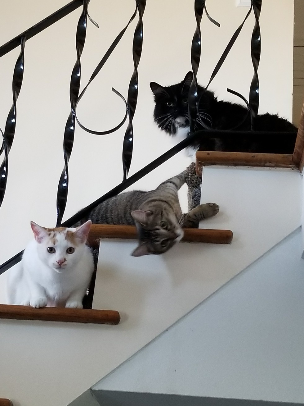 Three rescue cats who have become best friends and family.
