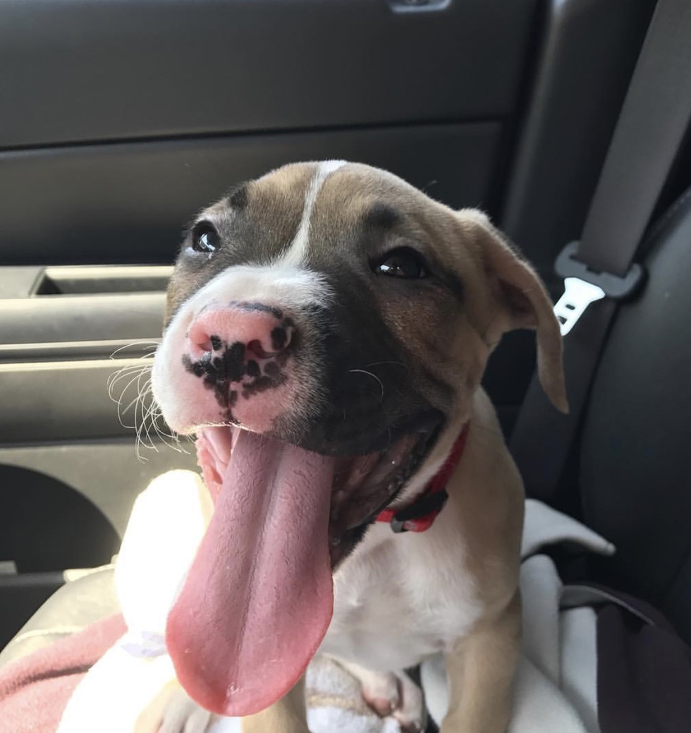 In short, my best friend’s two beautiful pit-boxer mix dogs had puppies, one being Mr. Romeo. When I saw his pink speckled nose, his clumsy and silly demeanor, and his constant strive to snuggle and show love, I knew I would be Romeo’s human. He won me over, and within seconds of meeting him, he stole my heart right away. I brought Romeo home with me, and the rest is history. Fast forward a few months later when I began dating my best friend (owner of Romeo’s birth parents).... Romeo was soon reunited with his biological mom and daddy, and today, we are all one big crazy and loving family dog pack. I wouldn’t change a thing!