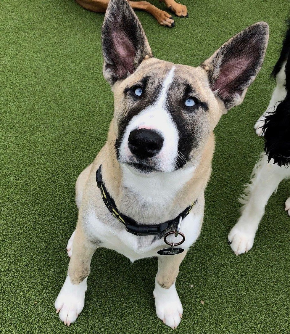 8 Month old Husky / Bull Terrier mix. He is full of energy and thinks he is one of the kids!