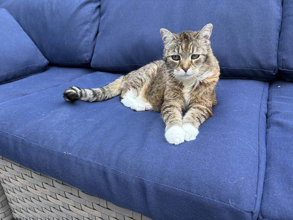 Fern's the grumpiest & sleepiest old lady around! She adores lounging in warm sunbeams, chicken churu treats, and lazing outside in the spring/summer breeze!