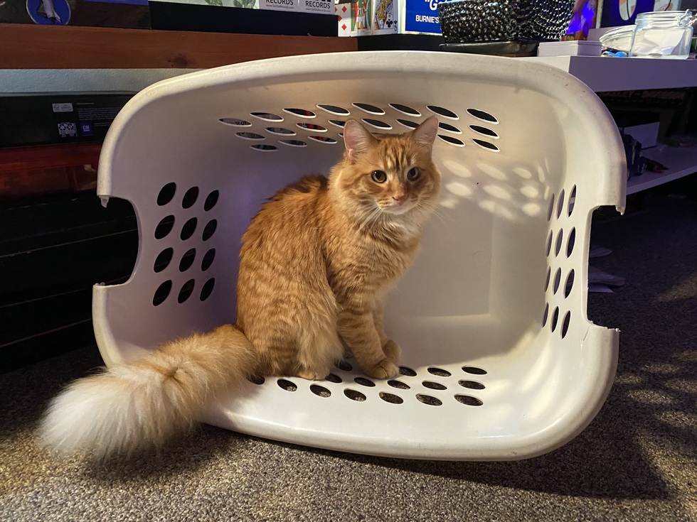 Hi, my name is Bill, short for Bilstein, my papa named me after the Bilstein shocks (car folks, iykyk). I love watching squirrels, birds, and neighborhood feline friends from the comfort of my bay window. I spend my days lounging in my hammock, mom’s blankets, and papa’s sweaters with my tabby sister, Dahlia. At night time, I get the zoomies and yell really loud at my parents from the basement stairs for fun. I respond to my nickname Bill Bill and love to grab my parents’ hands and bonk them. I pretend I live in the wild by “burying” my food every time I eat. I love to disassemble my water fountain and dip my chin and paws in the water. My orange fluffiness steals the show wherever I go! I’m handsome and I know it!
