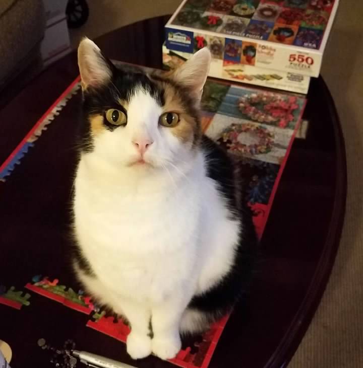 Hermione was a stray when I took her in, or rather, when she found me. I was caring for & living with my late father in 2019 and taking a walk at night when she started following me. Long story short, we took her in, tried to see if she belonged to someone where we were living, and a month later we couldn't imagine life without her. I still can't imagine it. When Dad passed last year, she got me through it. She is the sweetest thing. (And, I used to hate cats...)