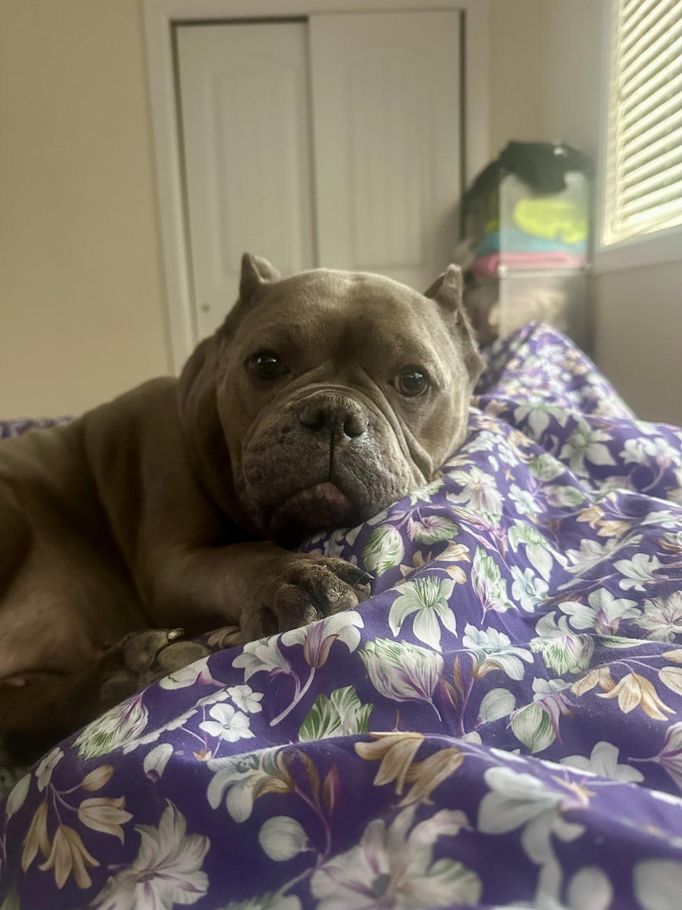 Poutine, is a total sweetheart with a big personality! She’s obsessed with treats and toys—especially anything squeaky—and will happily show off her stash like it’s treasure. She has a playful side but also loves to cuddle up when she’s tired. Her goofy expressions and happy energy make her the star of every room she walks into.