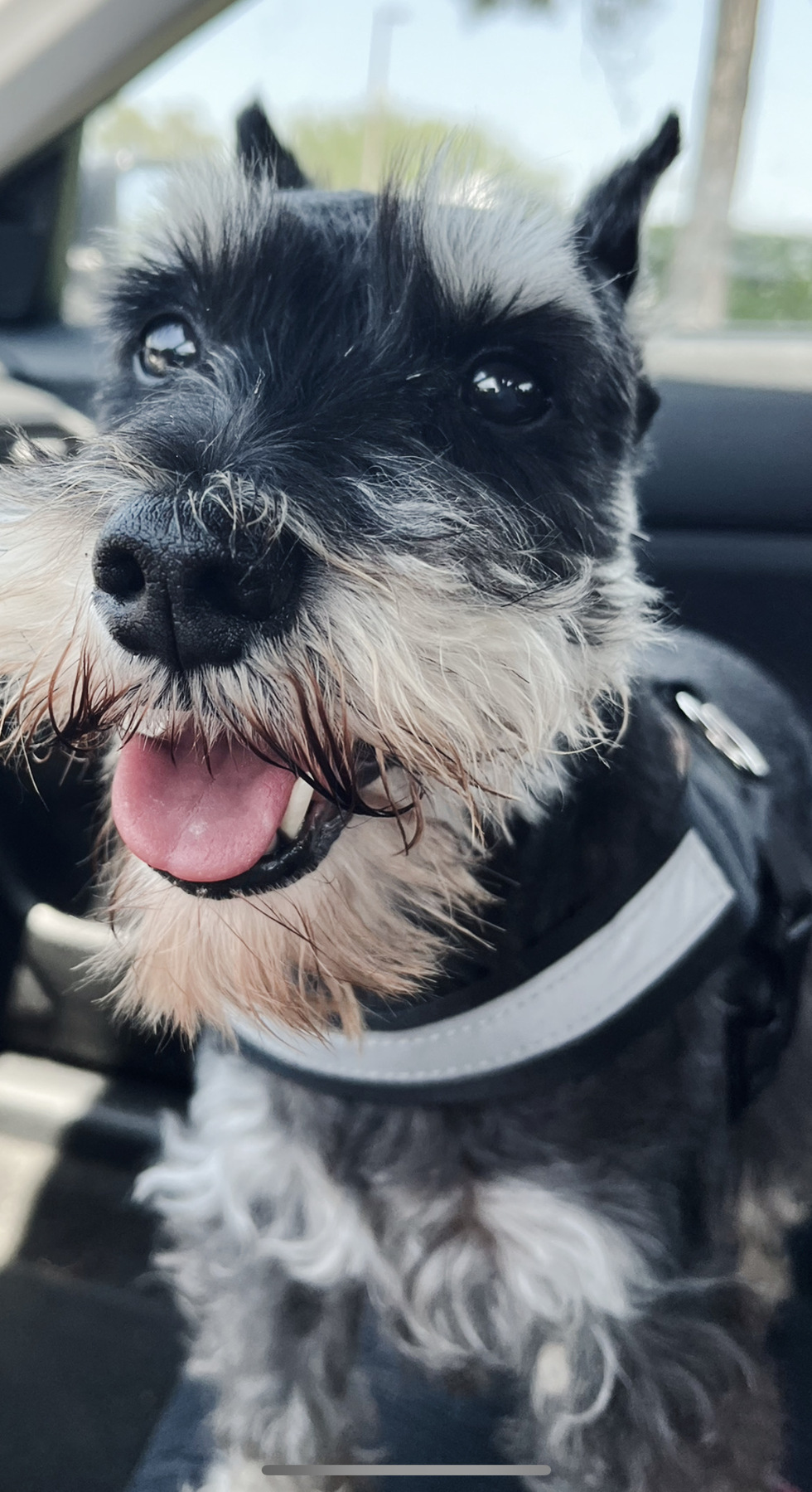 We adopted Ike from MSRH four years ago when he was 7 and he was called ‘Jason Wallace.’ We immediately called him Ike because he always looks ready to ‘hike’ a football with his little paw, and I didn’t like ‘Hike,’ so hubby and I settled on ‘Ike.’ He’s been the love of our lives and he has moved from Houston to Colorado Springs with us! I love being away from the heat, but Ike is extra cuddly in the cold weather!