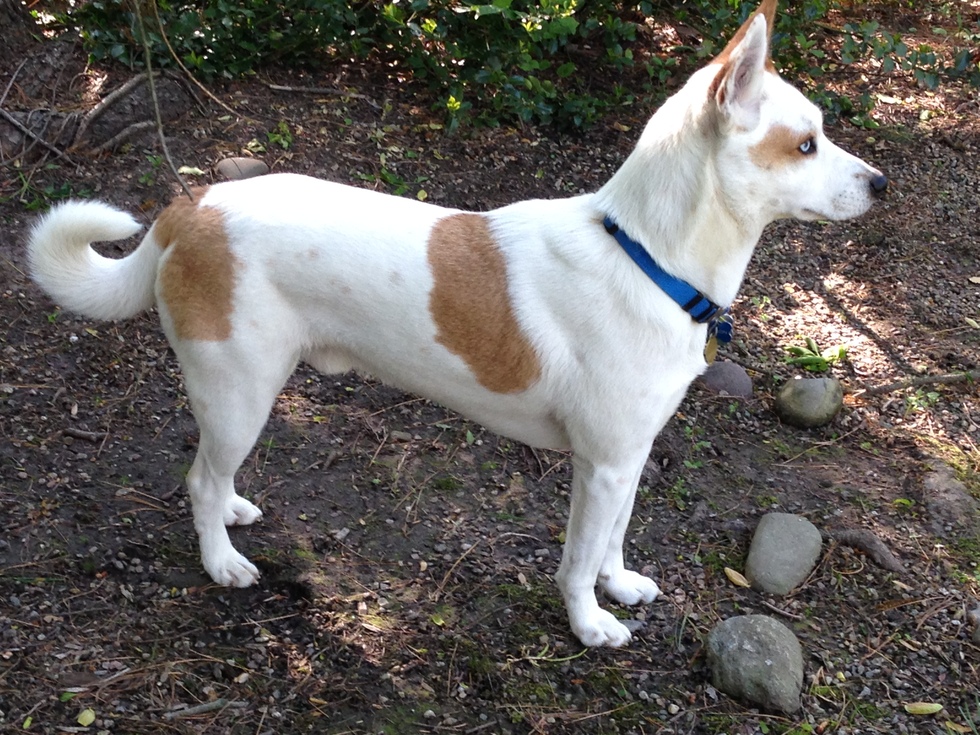 He is 50% Australian Cattle dog, 30% Siberian Husky, 20% every other breed and therefore 100% wicked smart! Poseidon is a 1 person dog and I am honored to be that person!