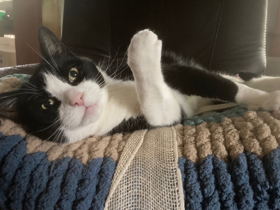 Tyler is a MetroWest alumni. Got him as a kitten with his brother Stevie, who has sadly passed. They were quite a pair together and we miss Stevie dearly. Fortunately, Tyler is not lacking in personality. He has tons of it. He owns the house, and we're happy to serve him.