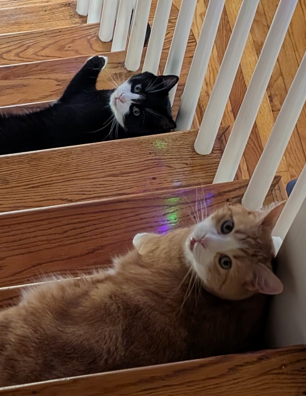 We adopted these two brothers from MWHS in January of 2020. They are incredibly sweet, funny, handsome, spoiled, and never far from each other.