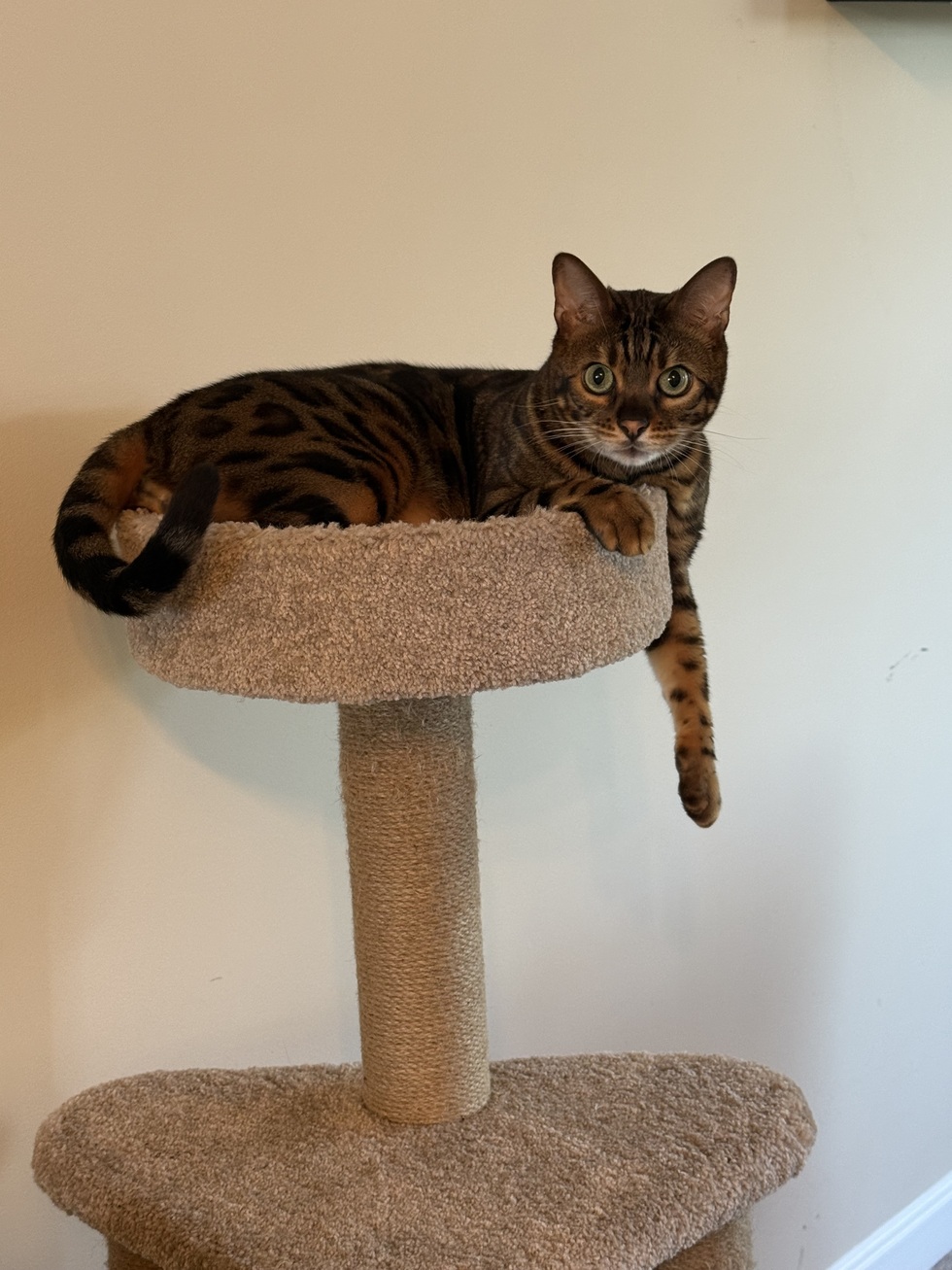 Hi! My name is Alfredo but my family calls me “Frey, Frey” or “baby cat.” I love to chase my feather, snuggle with my green stuffed mouse, and you might catch me doing back flips when I have the zoomies. I enjoy splashing in my water fountain and cleaning my beautiful coat. My mom says I have the most beautiful eyes.