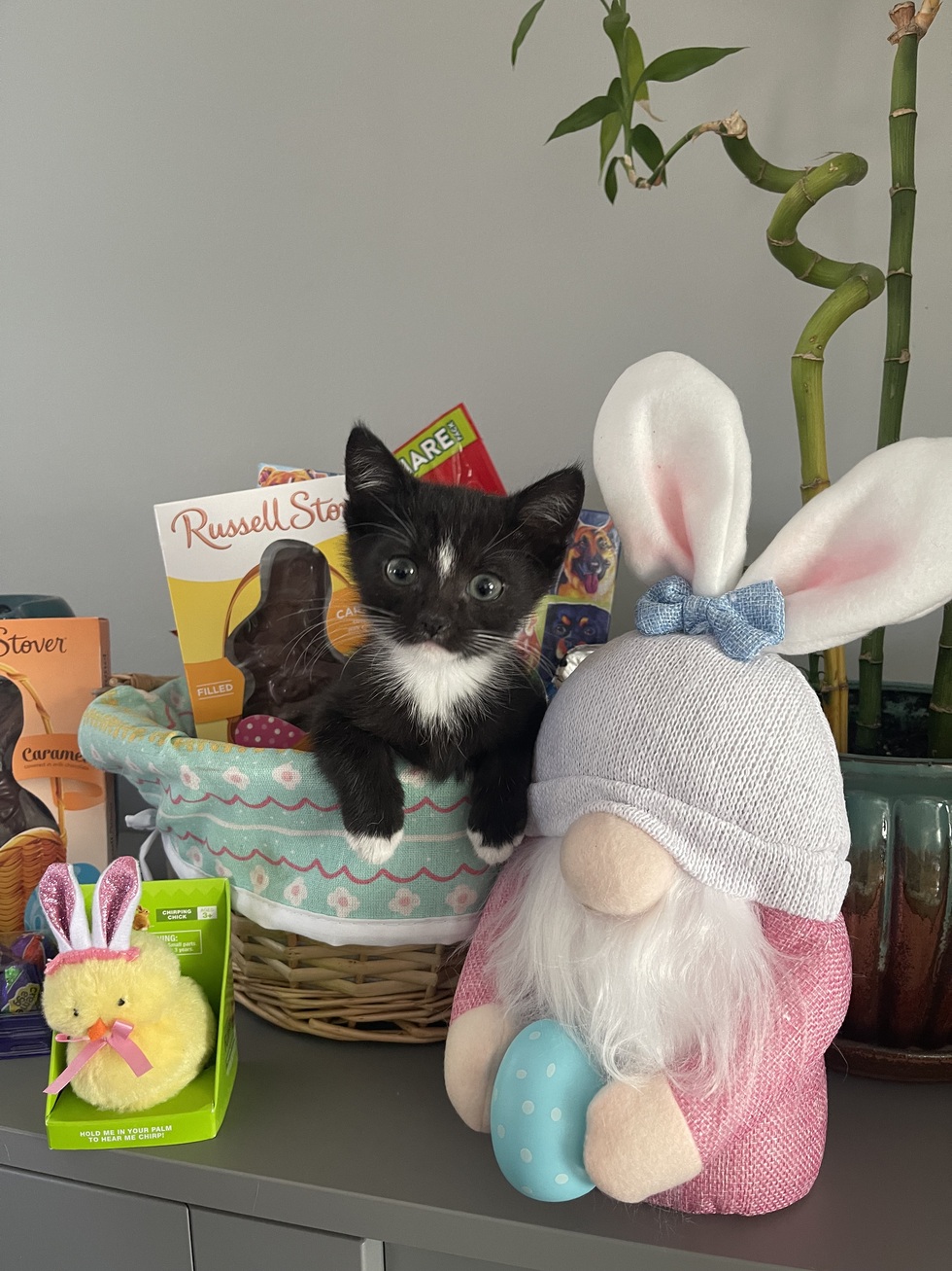 Cosmo was the tiniest of the litter born in foster care in February 2025 with a large hole in his heart called VSD, ventricular septal defect. Prognosis was and continues to be poor, but that doesn't stop Cosmo! He is often found playing, chasing and napping with his foster sister, a 60# Boxer. With the help of many friends at MWHS, he is fighting all odds to beat this congenital heart defect! Soft purrs and very playful banter, he reminds everyone who meets him that love, hope and resilience can make miracles!