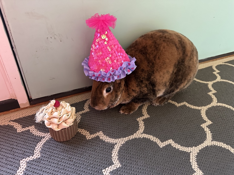 Beanie is a 1 year old Mini Rex. She loves some good bun-struction but is also the sweetest girl who enjoys head scratches and doing zoomies!