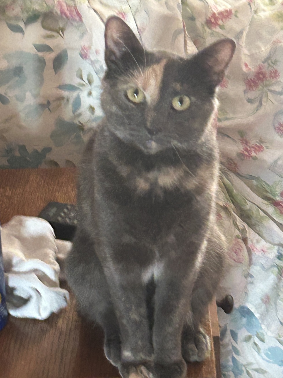 I saw Patrice’s adorable face on Petfinder in 2024. I had just lost my orange tabby of 17 years and needed a new fur baby in my life. The minute I saw her face I knew she had to come home with me. My understanding is that she was left behind in an apartment. That doesn’t seem to have affected how sweet she is. She was warm and loving from the minute she came home and greets guests without any fear.