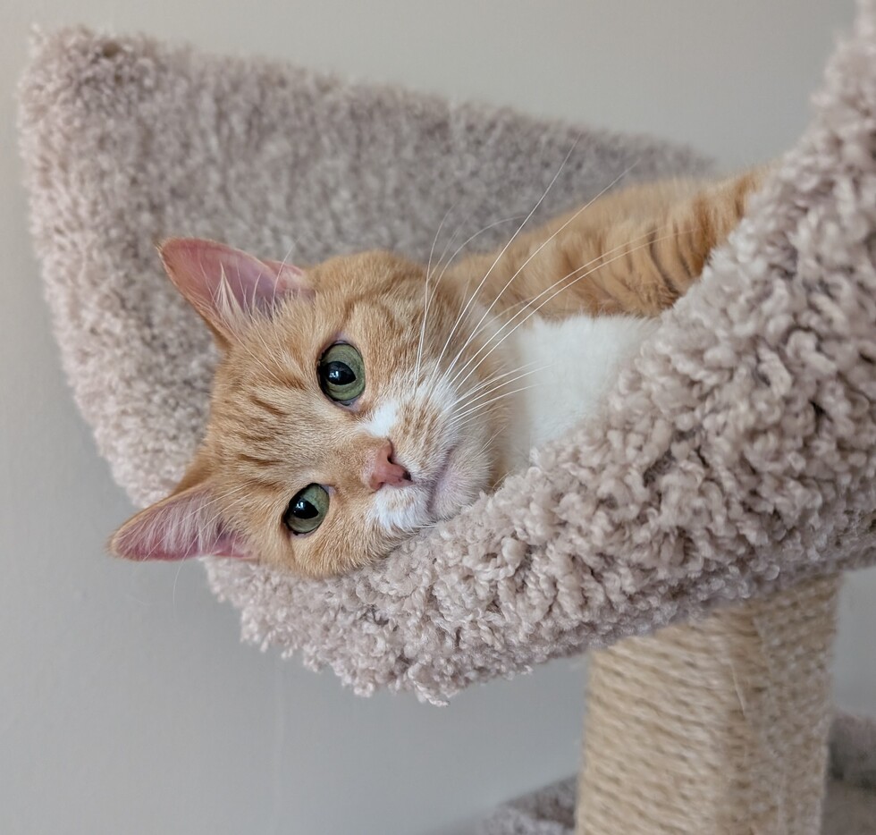 When Daisy's aunt cat-sits, she doesn't turn on the TV - because Daisy is all the entertainment she needs. She may be resting in this photo, but most of the time Daisy is a comedian, acrobat, and singer who also loves to display the fuzziest white belly in town.