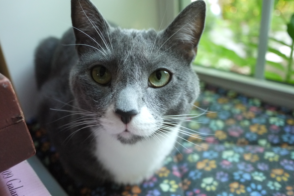 Malrubius is shy with strangers but can't get enough of the people he loves! Since coming to our home from MWHS late last year, he has settled in well. Now he is learning to adjust to a new cat with his usual mixture of fear overcome by curiosity.