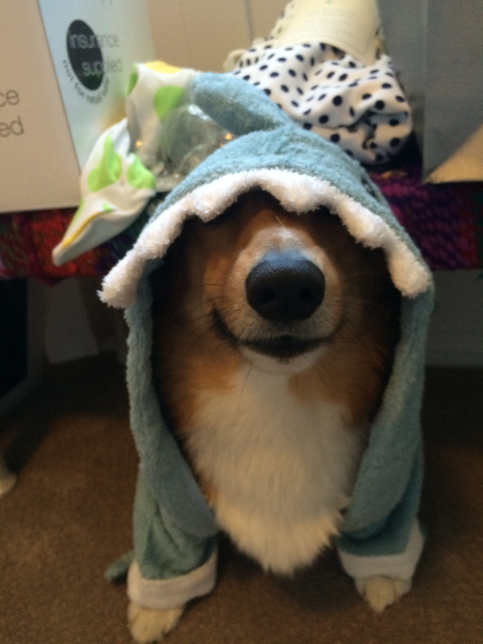 Henry is a corgi. He likes long walks on the beach, bubble baths and doing tricks!