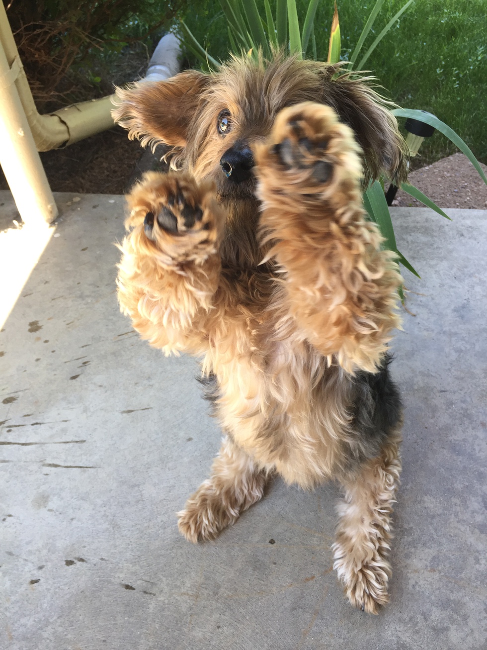 I rescued Max in 2006 from Maxfund Animal Shelter. He was a matted mess and was standing in the corner, shy of all the other dogs. He was 3 years old, found as a stray in Denver, and had more than likely been abused as he cowered down around any strangers. We drove down to the shelter to visit him a couple times and he would always perk up for us and cry when we left. Soon we were blessed and got our adoption finalized for this sweet boy. Introducing him to the family and any new person proved to be a little challenge- the new person had to stand still, not move their feet at all, and slowly let him just sniff them and get comfortable without touching him. He also was especially scared of men and those who walked up to him with white shoes on. He would try to bite at feet if someone kept moving them with him nearby. We suspect he was kicked by a man who wore white shoes. The more times we slowly introduced him to our family and friends repeatedly he warmed up great and has been the most loving teddy bear. He is still skiddish around men the first second he meets them but he gets comfortable if he senses they are good people. He is now 13 and still playing like a puppy to this day!