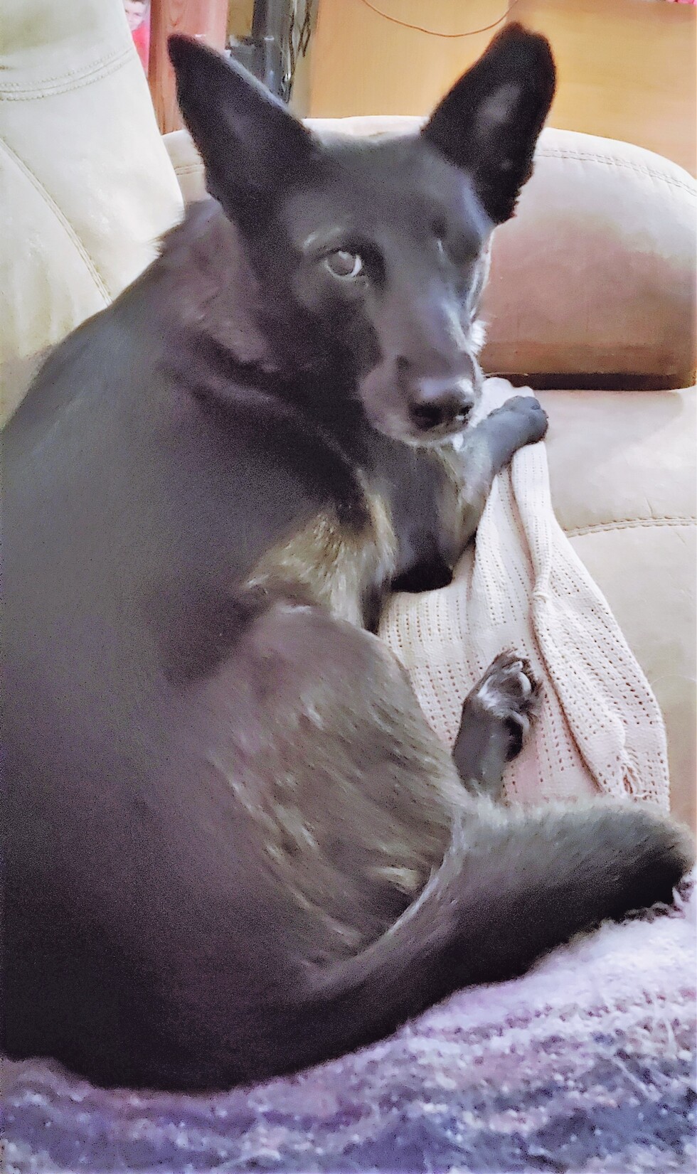 A little about me...Rescued from being hit by a car. NSPCA did emergency surgery on her, both hips/ pelvis's. Her eye could not be saved, but they all gave her the most appropriate name. Peek a boo is an Australian shepherd and literally peeks around corners to make sure we are doing what she wants us to do. She taps her nose behind our knees making sure we go in the right direction. Also to top it off she spins in circles waiting for us to open the back door to go out.