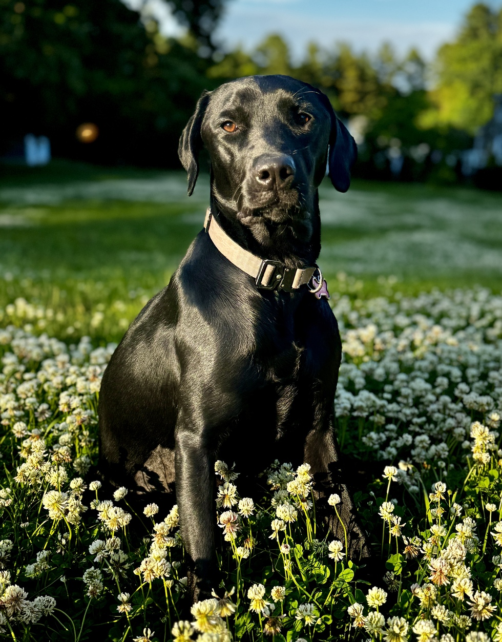Two years ago, a shy rescue from Georgia stepped into our lives, soft as a whisper and sweet as a peach. Griffey is gentleness in motion - padding beside us on muddy trails, pausing to listen to birdsong, then racing ahead with the breeze lifting her ears. In the car she leans into the world, nose to the wind, as if saying hello to every mile. At home she is everyone’s shadow and heartbeat, loyal to the buzz of the kitchen and the quiet of movie night. Myrtle, her cat sister, is her favorite co-conspirator; Juneau, her brother, is the expert in kisses and couch snuggles. Griffey has stitched herself into our every day, warming the rooms she enters. Our house is fuller, our hearts are softer because she is here.