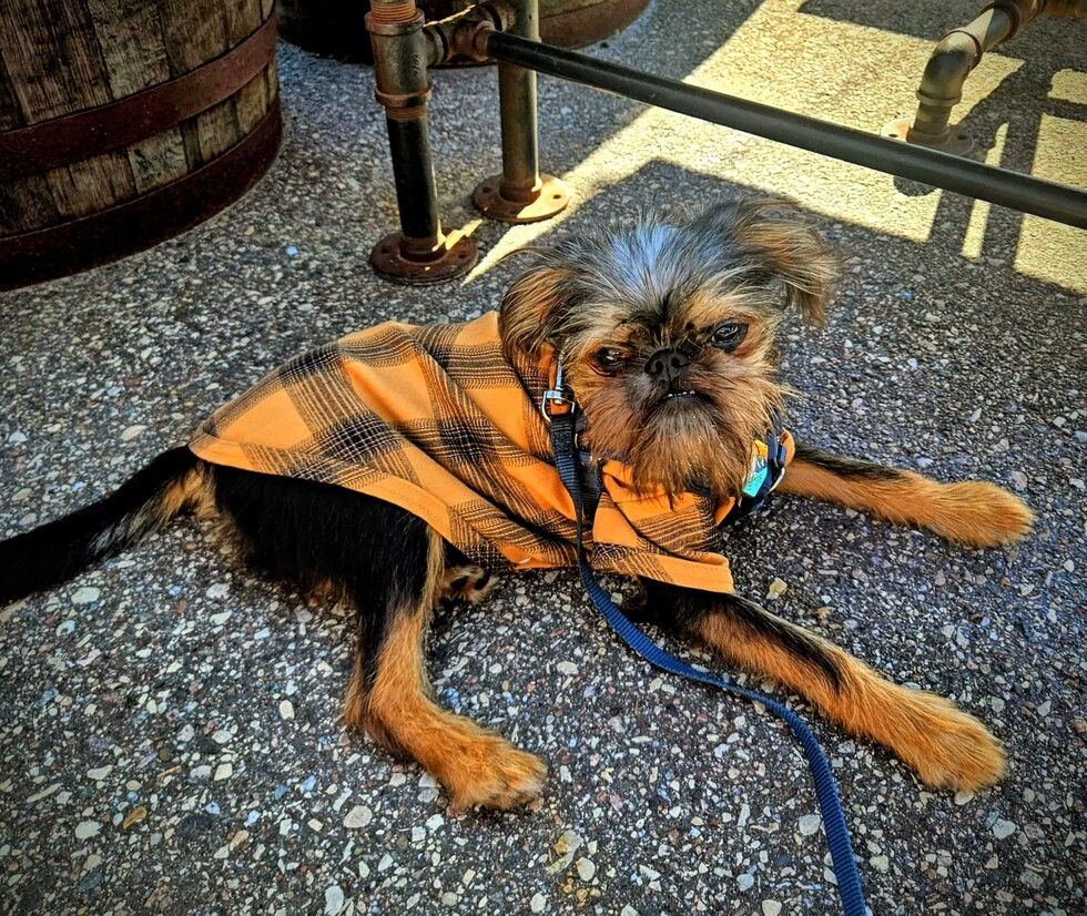 Bitters is my beer garden buddy. I can take him to a local pub and he just chills out with me while I enjoy the local brews. He also looks like an muppet and he has loads of personality.