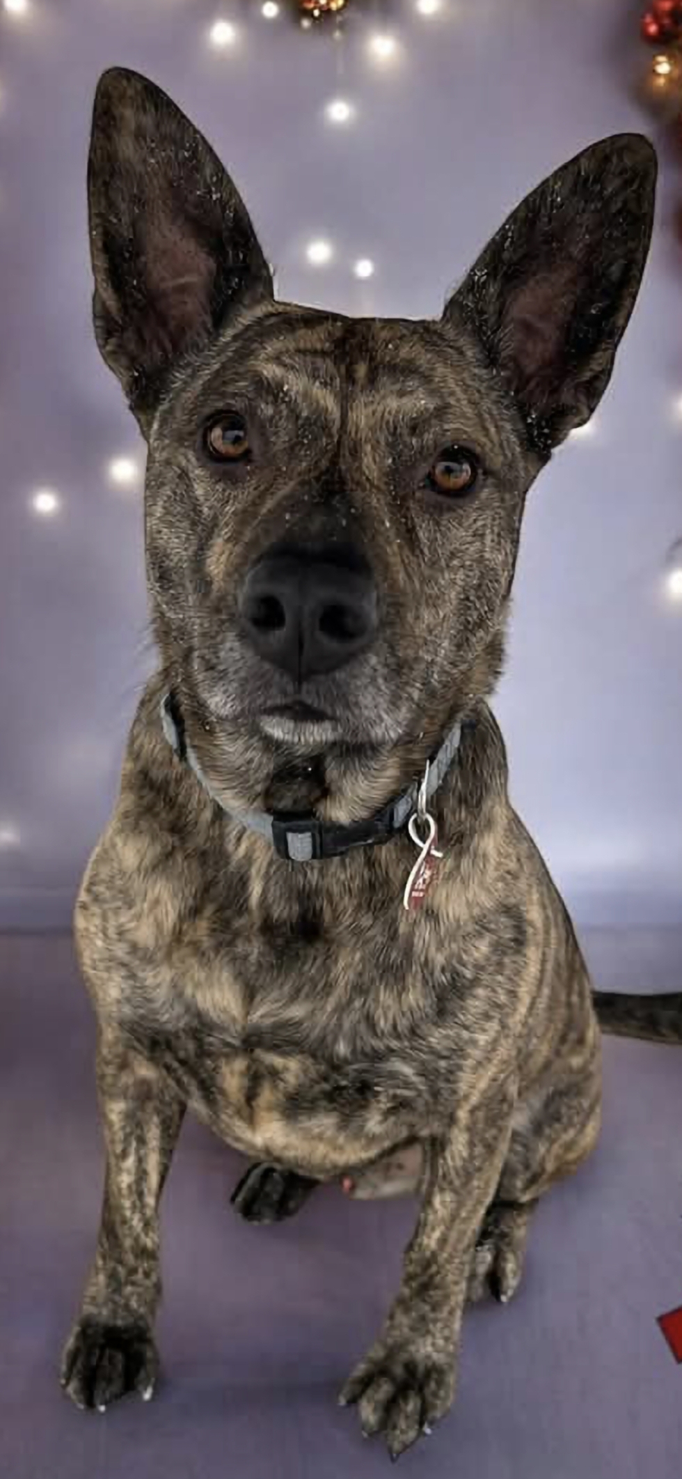 Meet Ed, our spunky and loving six-year-old brindle rescue. With his big Shepherd ears, soulful hazel eyes, and affectionate personality, he captured our hearts instantly! Adopted at two years old, Ed has become an invaluable part of our family—keeping the cats on their little bean toes and Mom constantly on the move with his boundless energy and love for playtime, walks, and car rides. Ed lives for his weekly daycare visits, and he knows exactly which day that is! Truly one of a kind, he’s the sweetest pup you’ll ever meet—loving everyone he encounters and eager to make a new friend the moment he can.